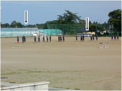 いつもながら野球部は、バックネットの所なので、いちばあ~ん端っこで活動中です。