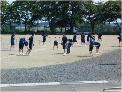 ハードルの授業での準備体操です。(うわー暑そう!!)