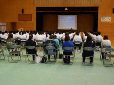 私立高校の先生方が来校し、その高校の説明を聞きます。