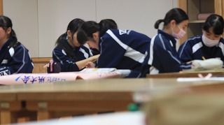 皆さん一生懸命部活応援ポスターをかいていました。