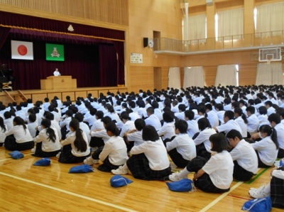 生徒たちは、整然と体育館に入場して静かに待っています。