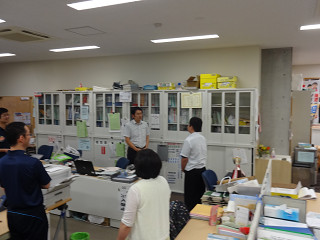職員室にて、大勢の先生方が見守る中、教頭先生へ結果を報告。
