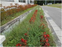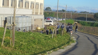 2017年9月9日 08時08分学校の外での除草をしている時、厚生委員会の方たちは保護者や生徒たちが