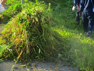 みんなで頑張ったおかげで、たくさんの雑草が抜かれました。