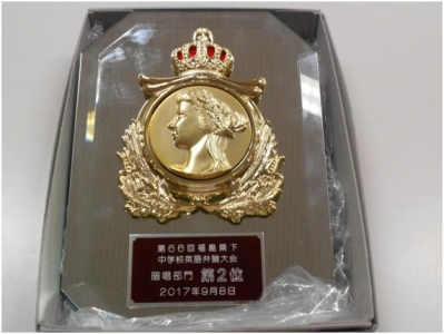 2017年9月9日 07時50分昨日、県英語弁論大会で2位を獲得したとご報告いたしましたが、