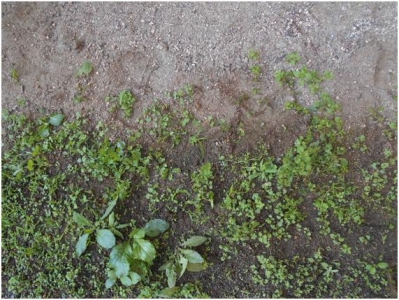 しっかりとはびこる草がある地面と草が1本もはえていない地面があることに気がつきました。
