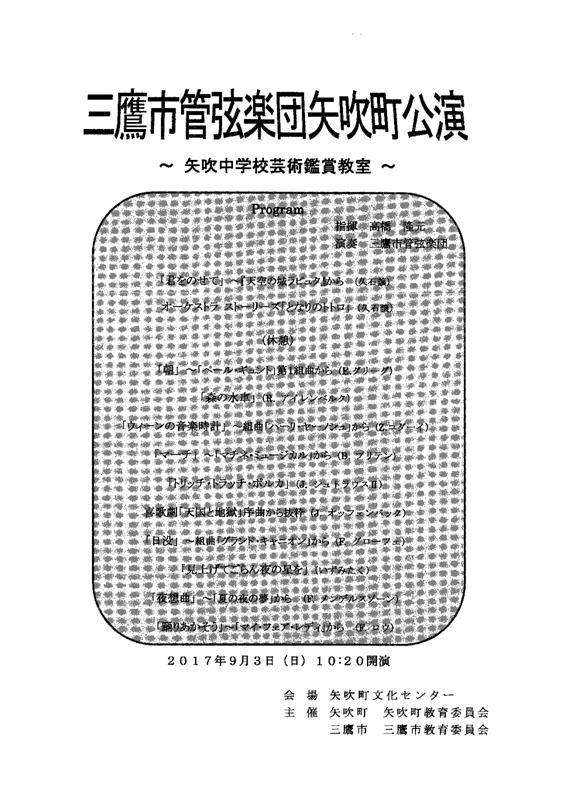 2017年9月3日 14時22分矢吹中生の吹奏楽部の2年生が、三鷹市管弦楽団の方たちと一緒に演奏をしました。