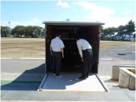 今回の楽器を運ぶトラックは荷台に広い鉄板(?)が付いているので、学校にある渡り板は