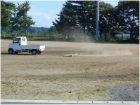 2017年9月3日 15時08分校庭から車を走らせる音が聞こえます。校庭の土をならしています。