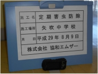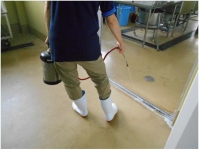 2017年8月9日 10時56分夏休み恒例、給食調理室に防虫駆除剤をまいてもらいました。