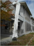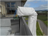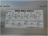 救助袋の点検です。 3階から広げていました。 下から見るとこんな感じ
