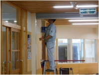 室内では防火扉と消化器の点検です。他に煙探知機の設備も点検していました。