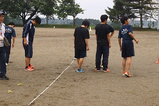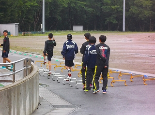 2017年5月27日 11時30分陸上部の練習です。ミニハードルを6人でとんでいました。