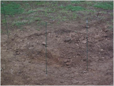 粘土の土と闘った後には4本の支柱が立ててありました。