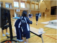 2017年5月27日 11時38分今日は、先生に指導をもらいながら、ゴールの練習をしています。 皆さん動きが速くてカメラに収めるのが大変でした。