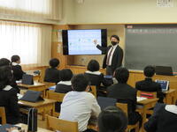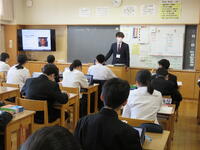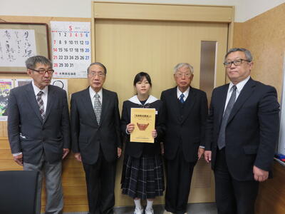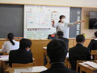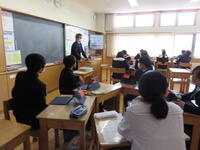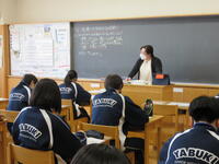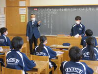 2023年5月8日 16時41分「矢吹町の歴史Ⅰ」は、矢吹町内の小中学生のために、矢吹町の古代の歴史(旧石器時代・縄文時代・弥生時代・古墳時代)を分かりやすく8ページにまとめたパンフレットで、このほど矢吹町文化財保護研究会によって発行されました。本日は、この研究会から髙田春男会長様、栗林正樹副会長様、佐藤陽一事務局長様をお招きして、完成記念講話集会を1年生全員が参加して実施しました。この講話では、栗林副会長様が、作成の苦労話や内容のポイントなどについて話してくださいました。1年生も「その場所に行ったことがあります」などと反応しながら勉強しました。今後、シリーズ第2弾、第3弾が発行されることが楽しみです。講話集会の後、1学年を代表して笠巻陽香さんがお礼を述べ、贈呈されたパンフレットを受け取りました。中学校には、148冊のパンフレットをいただきました。図書館で保管し活用させていただきます。ありがとうございました。