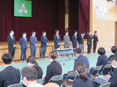 2023年5月1日 18時08分4月28日(金)に、今年度初めての全校集会を実施しました。ここでは、学級役員(学級委員長、学級副委員長、学級書記(2名))を任命しました。また、今年度担当のスクールカウンセラーである田村圭子先生も紹介しました。