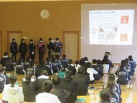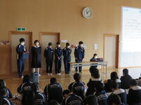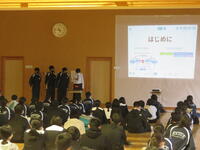 2022年12月15日 14時03分本日15日(木)3校時に、矢吹創生学の3学年発表会を行いました。すでに、学年内の大テーマごとに全ての班が発表を行っており、今回はそこで選ばれた代表6つの班による発表会となりました。発表の内容は、最上級生らしく、小テーマ設定の理由や、具体的に調べた内容、矢吹町の未来のために考えたアイディアなどをわかりやすくまとめられていました。また、SDGsとの関連づけについても、しっかりした視点を持った説明だったと思います。校内発表会でも、1・2年生の模範となる発表を期待しています。
