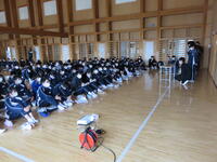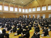 2022年12月24日 09時55分12月23日(金)に2学期終業式を実施しました。校長の式辞では、2学期のたくさんの対外行事や学校行事で大きな成果をあげ、成長の跡をしっかり残したことに加え、学習面での頑張りも多く見られたので、3学期もさらに充実した取組ができるようにつなげていきましょうとの話をしました。また、各学年代表の生徒発表では、自分達が2学期に残した成果をしっかり分析して述べ、いくつかあった反省点については3学期にきっと改善していきたいとの決意を立派に述べていました。1月10日(火)の3学期始業の日にまた元気に再会しましょう。