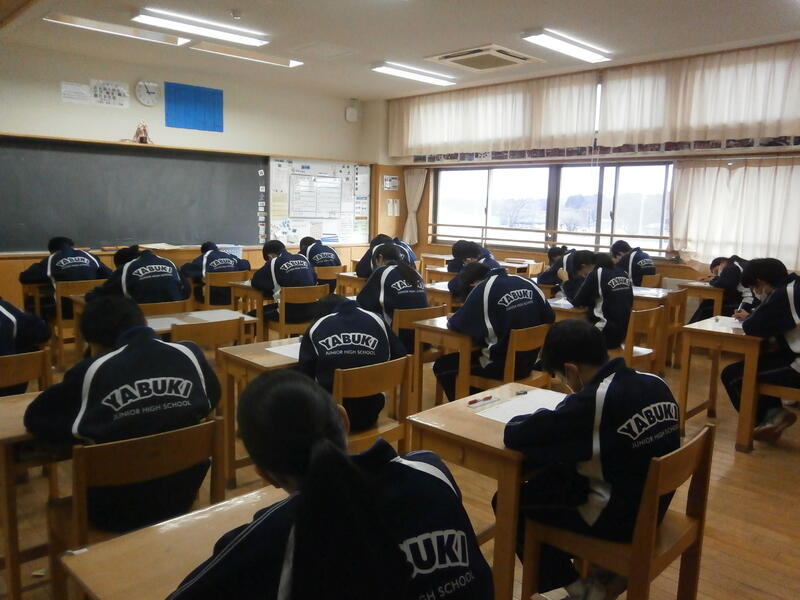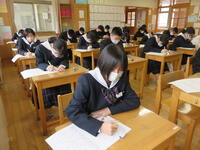 2023年1月13日 18時17分 本日の6校時に、スペリングコンテストが行われました。全員合格を目指して、英語科を中心に学年や学級でも工夫を凝らしながら頑張ってきました。スペリングコンテストは英語の基礎力の向上を目的として、これまでずっと続けられています。以前は西白河郡と東白川郡の中学校で別々に行っていましたが、今は一緒に行っており、県南地区の中学生が同じものに取り組んでいます。先生方の中にも経験している先生もおり、保護者の方々にもスペリングコンテストに取り組んだという方も多いと思います。本気の頑張りは英語の力になることはもちろんですが、他の分野にも絶対に生かされますので、これからも自信をもって何事にも全力で頑張っていきましょう。