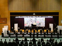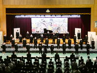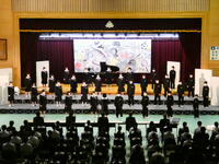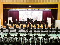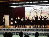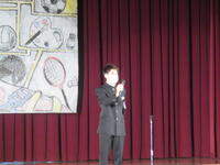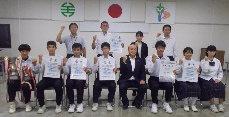 2022年9月27日 22時18分 9月27日、矢吹町役場にて、矢吹町長蛭田泰昭様をはじめ矢吹町教育委員会教育長大杉和規様など多数のご臨席のもと、8月に行われた全国中学校体育大会出場の報告会を行いました。男子200m、男子4×100mR、女子100m、卓球女子シングルスの全国大会や東北大会での活躍を報告した後、蛭田町長様、大杉教育長様よりお祝いの言葉をいただきました。選手を代表して本多遥流斗さんがお礼の言葉を述べ、最後に記念撮影を行いました。日頃よりみなさんから応援していただいていることがとても伝わり、あたたかくすばらしい報告会となりました。選手のみなさんも、これからも町民のみなさんの応援を受け、さらに頑張っていこうという気持ちが一層強くなったようでした。