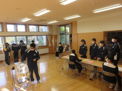 2022年11月1日 11時50分10月31日(月)に、新年度の生徒会役員を決める選挙を実施しました。新型コロナウイルス感染防止のため、リモート形式で実施しました。立会演説会は、立候補者と応援者の演説をパソコン室で行い、各学級のテレビモニターに映し出されるようにし、投票は、各学年ごとに空き教室を利用して行いました。開票結果は、11月1日(火)の下校前にお知らせします。選挙管理委員会のみなさんの準備と運営ご苦労様でした。