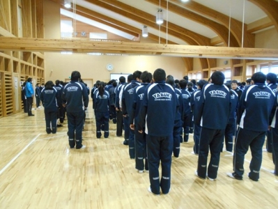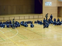全員立って、肩の上げ下げ、呼吸法を学びました。目をつぶって深呼吸をした後、