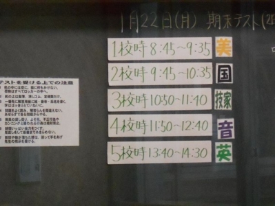 2018年1月22日 12時23分3年生の期末テスト2日目です。