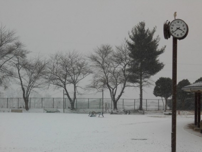 2018年1月22日 15時40分雪が降り始めて1時間半、あっという間に校庭は真っ白。
