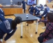 2018年1月16日 14時31分学校薬剤師さんが来校しました。教室の二酸化炭素濃度を測定するためです。