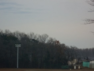 校庭の方を見ても、どんよりとしています。この時間に、いつもは右側にあるはずの