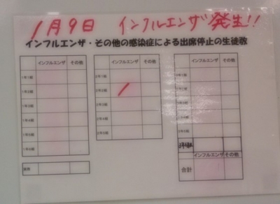 2018年1月9日 17時45分インフルエンザ感染者がついに・・ 出てしまいました。(残念)