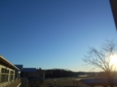 こんなに晴れているので、(晴れているから?)校庭には霜が白く落ちています。