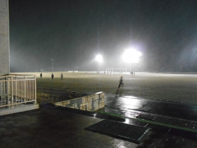 校庭に出てみると、見事な雪。しかも寒い・・・。