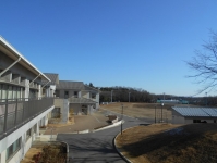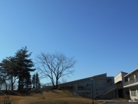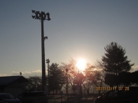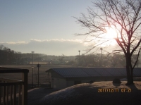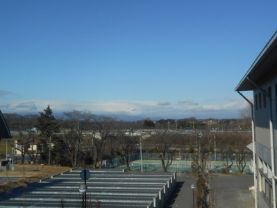 職員駐車場から見ても太陽は低いです。 階段を上っても低いです。