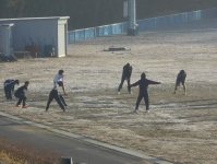 2017年12月11日 08時08分この寒い朝でも、陸上部は元気に走っています。