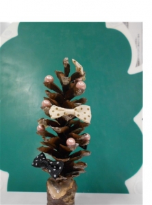 学校の敷地内に落ちている松ぼっくりを利用したものです。