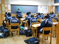 校舎の中は比較的暖かいのですが、半そでのTシャツを着て、「寒い」を連呼している