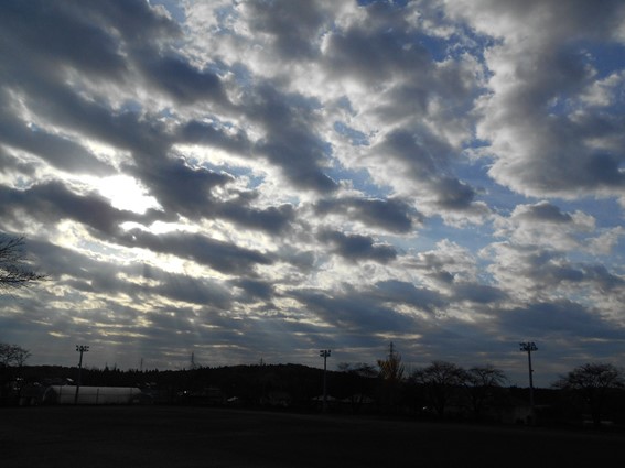 2017年11月15日 08時20分今日の朝は雲の間からいくつもの光の筋が地面に降り注いでいました。