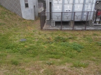 2017年11月8日 16時38分臨時駐車場を一回りし、貯水槽の脇を歩いていると、緑の草むらの中にたくさんの黄色いものが生えていました。よくよく見るとキノコの群生です。