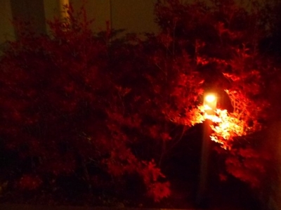 丁度赤く紅葉したツツジのそばにも照明が点灯し、ツツジと照明の絶妙な色具合が