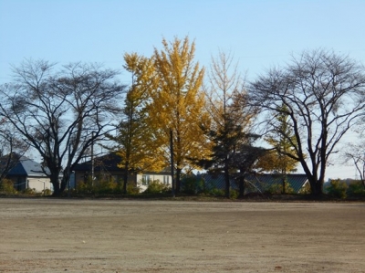両隣の桜の葉は散ってしまい、イチョウの黄色い色が目立っています。