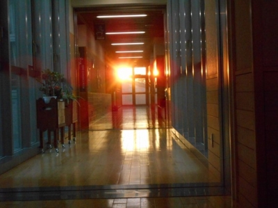 2017年10月26日 17時00分用事があって3階に行くと、丁度廊下にまっすぐ太陽の光が入っているのに気が付きました。