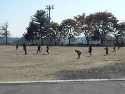 2017年10月27日 11時55分4校時、青空の下、しかも暖かい空気の中、体育でキャッチボールをしていました。