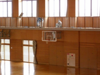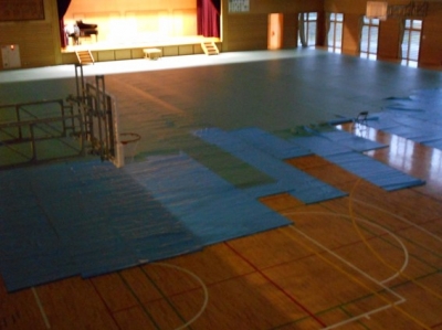 2017年10月19日 18時05分体育館にシートを敷きます。