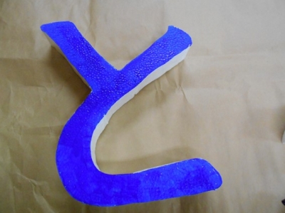 どうやら、発泡スチロールを文字の形に切りぬいて、それに色を塗っているようです。