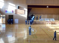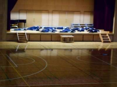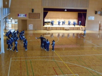 体育館で、クラスごとのリハーサルです。照明を使ってのリハーサルでした。