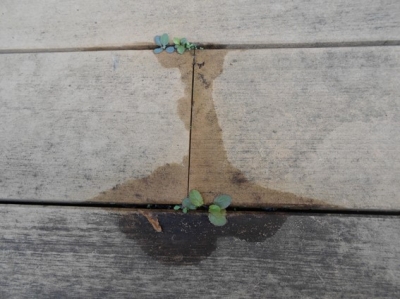 2017年10月18日 09時28分渡り廊下に小さな植物が生えていることは先日紹介しましたが、今日見たらその時よりも確実に大きくなっていました。