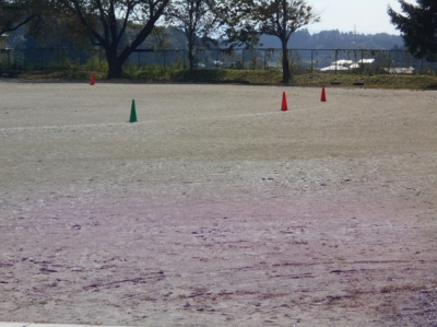 2017年10月18日 10時06分校庭にきれいにカラーコーンが置かれています。