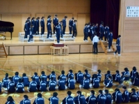 2017年10月17日 16時06分3年生は6校時に体育館でのリハーサルです。3年生はクラスごとに歌い、音楽の先生からの助言をいただきます。ここまでくると3年生は完成度が上がってきています。